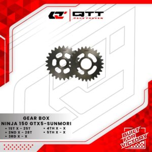 Gear box QTT dirancang dengan hitungan yang berbeda dari standardnya untuk kebutuhan Race maupun Harian dan sudah melalui finisihing hardent sehingga ketahanan lebih kuat. Dengan mengetahui rasio gear box, maka dapat diketahui berapa kali mesin berputar untuk menggerakkan roda kendaraan. Semakin tinggi rasio gear box, semakin kecil putaran mesin yang dibutuhkan untuk menggerakkan kendaraan pada kecepatan tertentu. Hal ini dapat membantu meningkatkan efisiensi bahan bakar dan performa kendaraan. Maka dari itu pastikan untuk hitungan rasio sesuai dengan kebutuhan mesin dan track yang di butuhkan